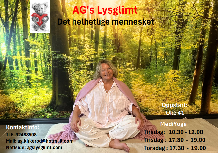 Jeg, Anne-Grethe Kirkerød er eier av og driver AG’s Lysglimt. Jeg brenner for at mennesker skal ha det best mulig i sin hverdag til best mulig helhetlig helse.